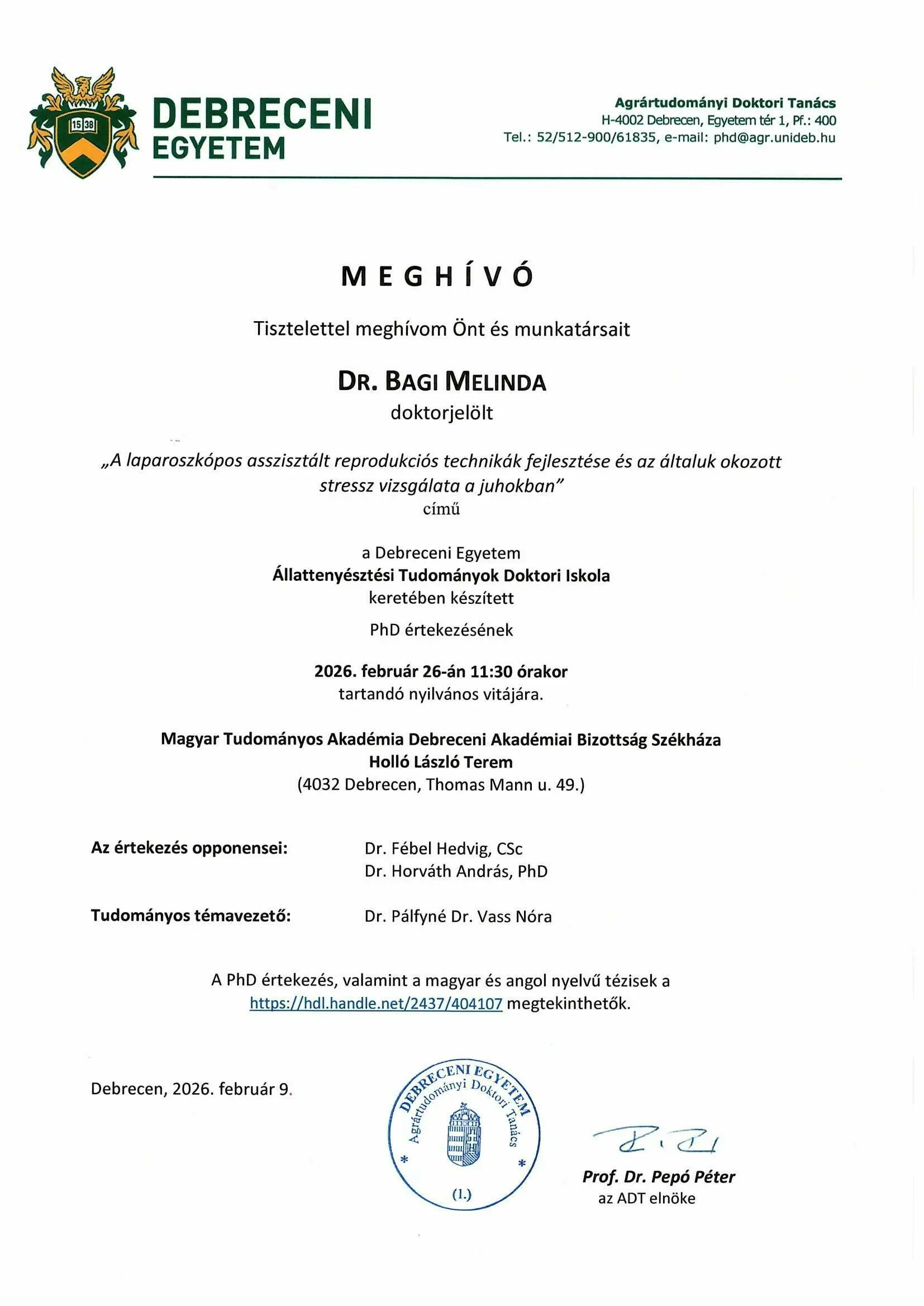 2026. 02. 26., cs – 11:30 Tisztelettel meghívom Önt és munkatársait Dr. Bagi Melinda nyilvános vitájára Legutóbbi frissítés: 2026. 02. 16. 13:32