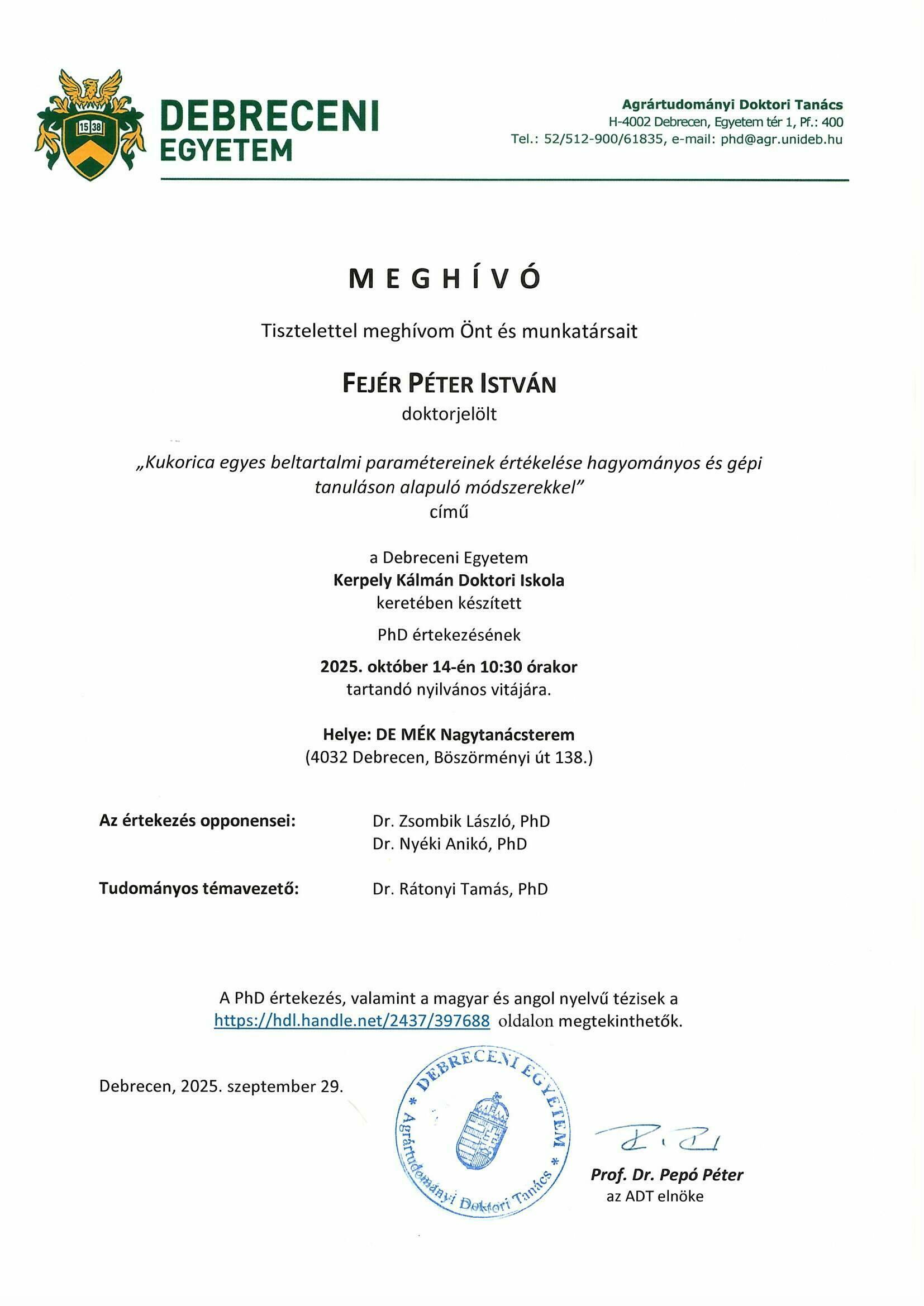 2025. 10. 14., k – 10:30 Tisztelettel meghívom Önt és munkatársait Fejér Péter István nyilvános vitájára Legutóbbi frissítés: 2025. 10. 07. 13:22