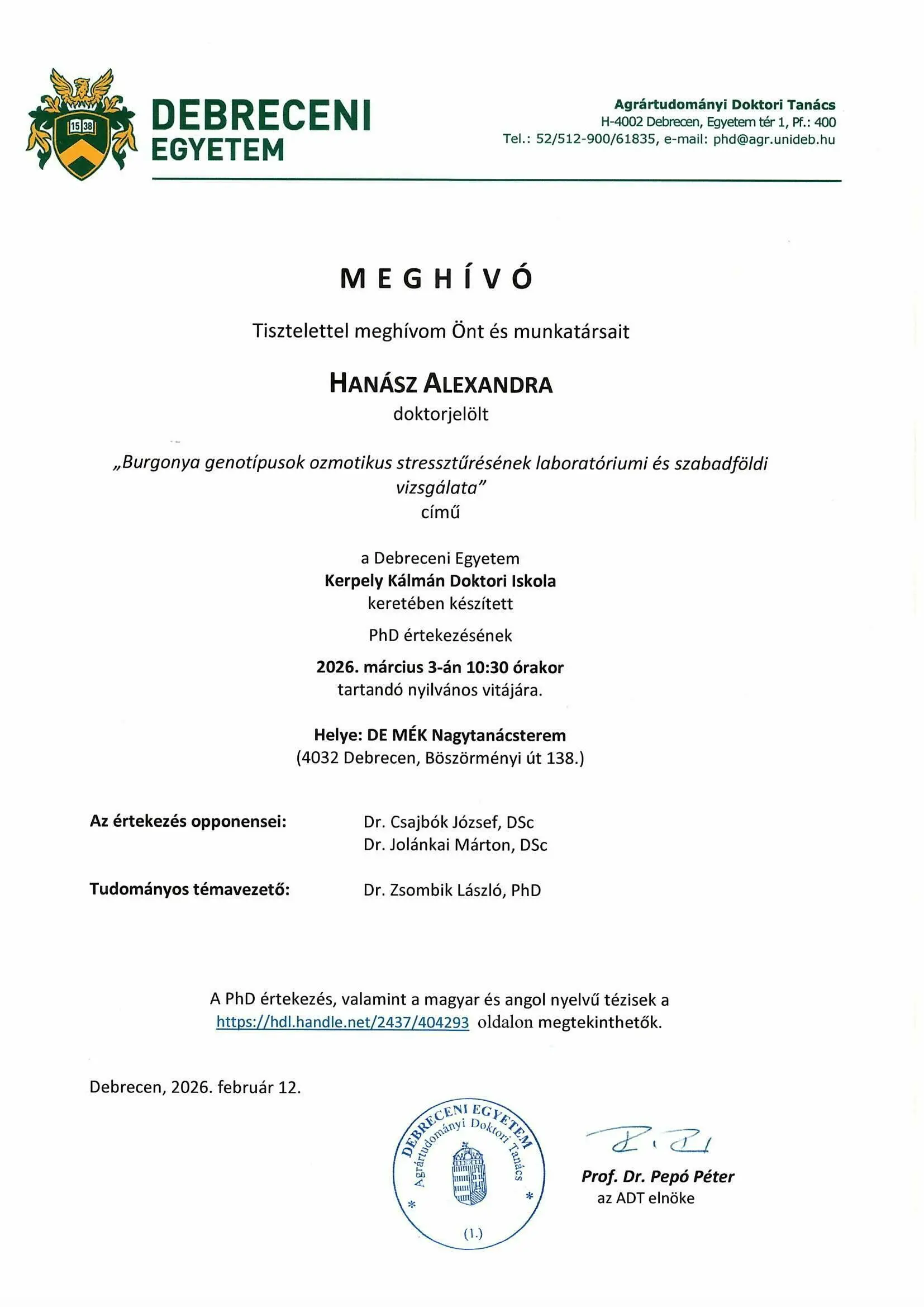 2026. 03. 03., k – 10:30 Tisztelettel meghívom Önt és munkatársait Hanász Alexandra nyilvános vitájára Legutóbbi frissítés: 2026. 02. 16. 13:34