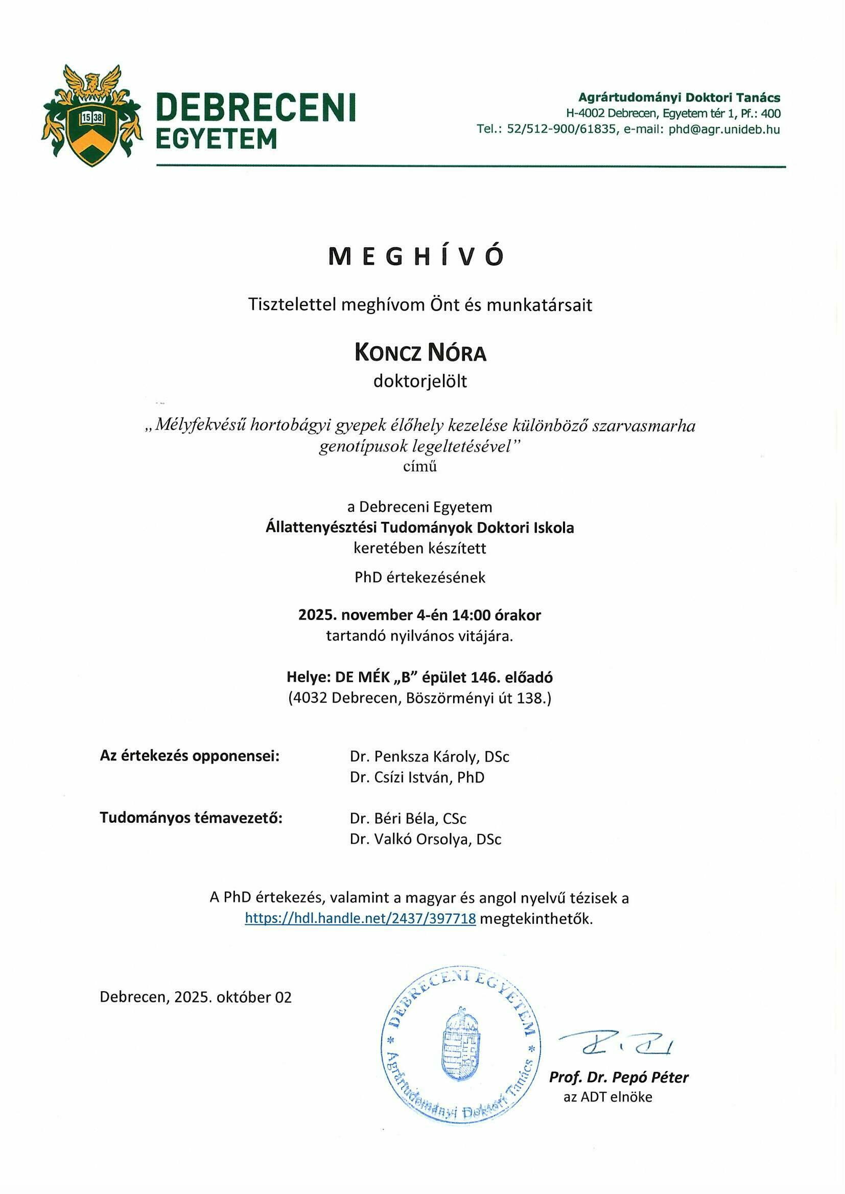 2025. 11. 04., k – 14:00 Tisztelettel meghívom Önt és munkatársait Koncz Nóra nyilvános vitájára Legutóbbi frissítés: 2025. 10. 07. 13:21