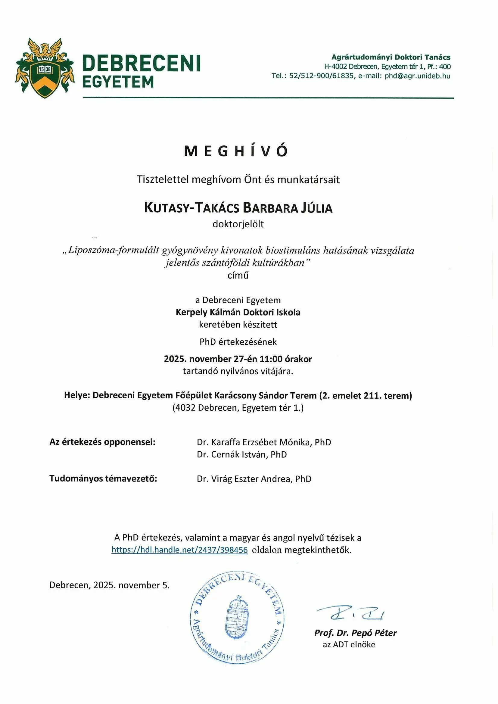 2025. 11. 27., cs – 11:00 Tisztelettel meghívom Önt és munkatársait Kutasy-Takács Barbara Júlia nyilvános vitájára Legutóbbi frissítés: 2025. 11. 18. 14:58