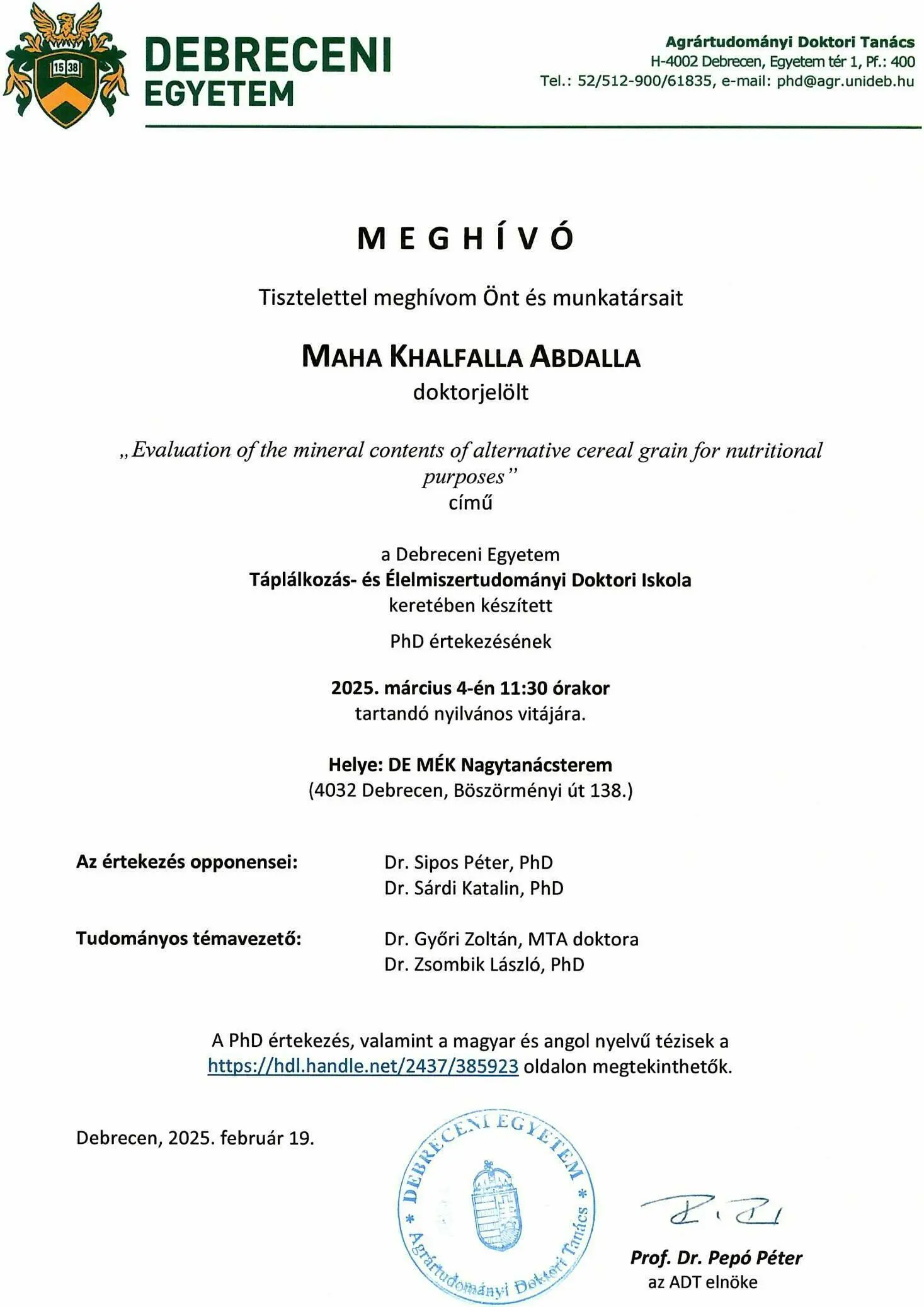 2025. 03. 04., k – 11:30 Tisztelettel meghívom Önt és munkatársait Maha Khalfalla Abdalla nyilvános vitájára Legutóbbi frissítés: 2025. 02. 21. 11:33