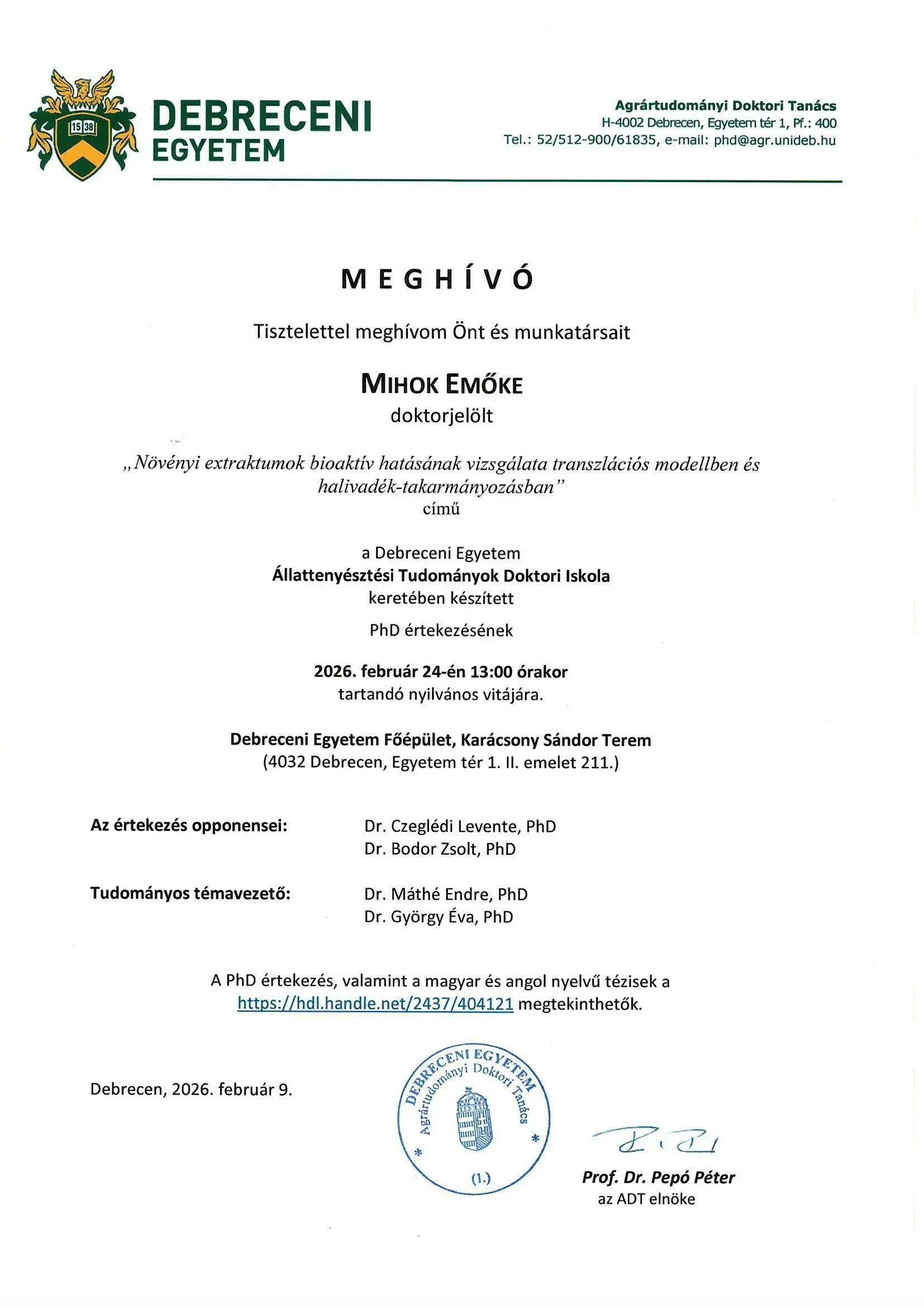 2026. 02. 24., k – 13:00 Tisztelettel meghívom Önt és munkatársait Mihok Emőke nyilvános vitájára Legutóbbi frissítés: 2026. 02. 16. 13:36