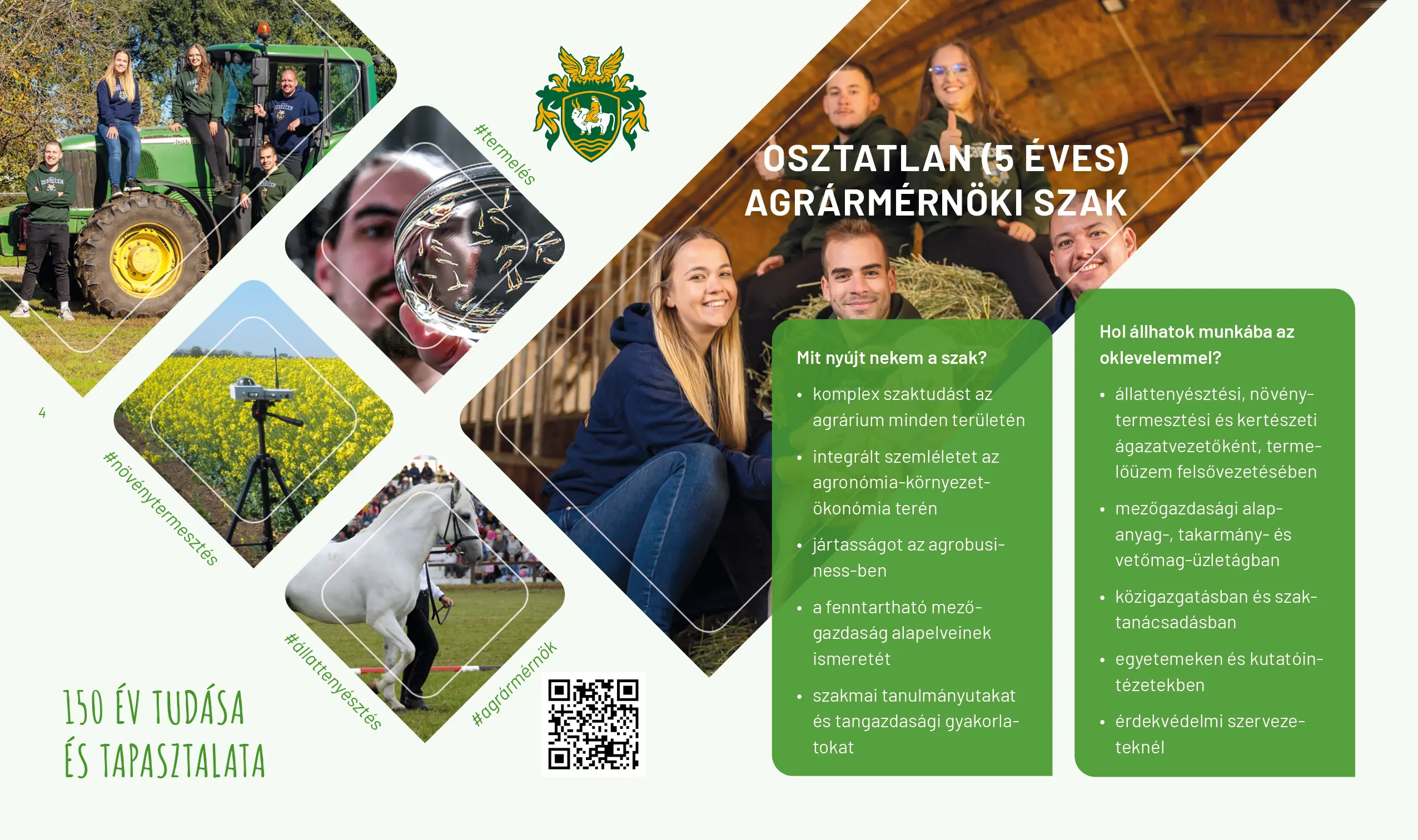 A képzés során részletes ismereteket szerezhetnek a hallgatók azon alapozó tárgyakból (matematika, kémia, talajtan, növénytan, növényéllettan, állattan, állatélettan, genetika, géptan, gazdasági ismeretek, statisztika, stb.) az első három évben, melyeknek célja az elméleti ismeretek elmélyítése. Ezek birtokában a hallgatók képesek lesznek elsajátítani a komplexebb szakmai tárgyak (növénytermesztés, állattenyésztés, vízgazdálkodás, kertészet, kereskedelem és marketing, agrárgazdaságtan, munkaszervezés) ismeretanyagát. Továbbá ezen ismeretekre alapozva eldönthetik, hogy mely irányba folytatják tovább tanulmányait. Alapismereteiket felhasználva a képzés 3. évében a hallgatók eldönthetik, hogy az alap agrármérnöki szaktudásán túl, az állattenyésztés, a növénytermesztés vagy a vízgazdálkodás területén szeretnének mélyebb és specifikusabb ismereteket szerezni. Az elméleti oktatással karöltve gyakorlati képzésben is részesülnek a hallgatók a tanulmányaik során. A szerzett tudásukat bővíthetik és gyakorolhatják a hetesi, illetve a nyári gyakorlati idejük során. Ezen gyakorlati képzés során betekintést kapnak a hallgatók a kutatási és termelési munkák menetébe. Kiemelten fontos didaktikai feladatot jelent a szak hallgatóinak tutoriális (kiscsoportos, egyéni) rendszerben történő segítése. Mindennek eredményeképpen a hallgatók a legsokoldalúbb, legversenyképesebb szaktudás birtokában kerülnek ki a munkaerőpiacra, ahol az álláslehetőségek legszélesebb skálájából tudnak választani.